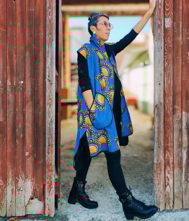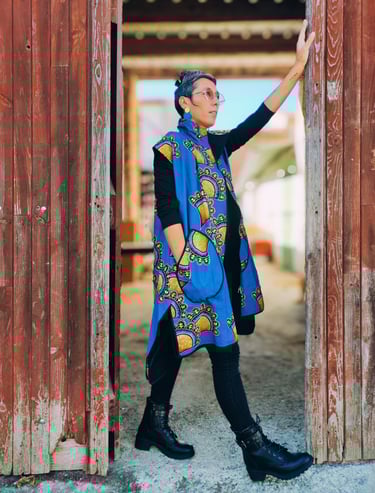 Entièrement REVERSIBLE , 2 faces Wax différents, cette version de la MAGALI est bordée de noir tout le tour